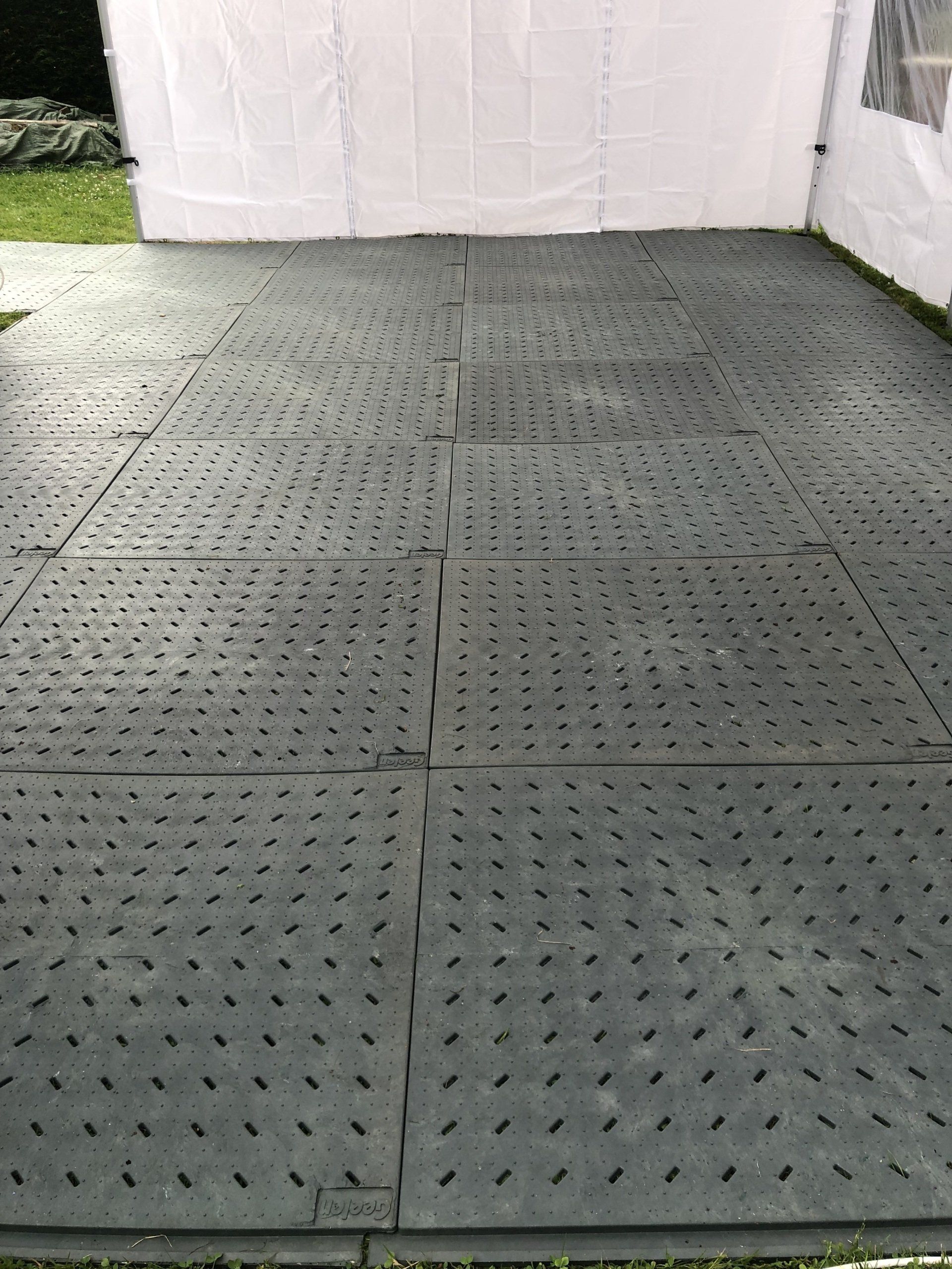 Partyzeltboden aus Gummi/Kunststoff mit Nut und Feder